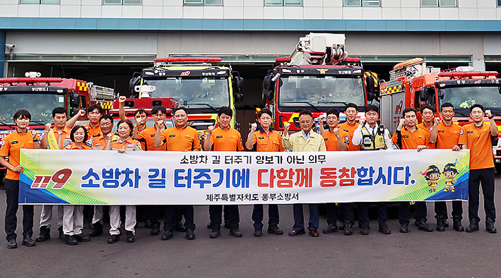 제주동부소방서(서장 김대홍)는 지난 23일 소방차 출동로 확보와 신속한 재난현장 접근성 향상을 위해 국민 참여 소방차 동승체험을 실시했다.