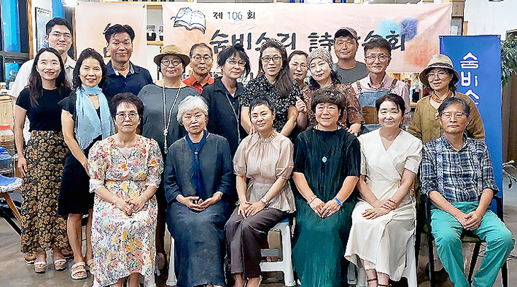 숨비소리 시낭송회(회장 고길선)는 지난 26일 서귀포 효소마을 엉커리에서 '8월, 여름 끝자락에 추억 하나 매달고' 란 주제로 제106회 숨비소리 시낭송회 정기공연을 열고, 마지막 한여름 무더위를 이겨내고자 하는 열정과 다가올 가을의 상생과 화합을 노래했다.