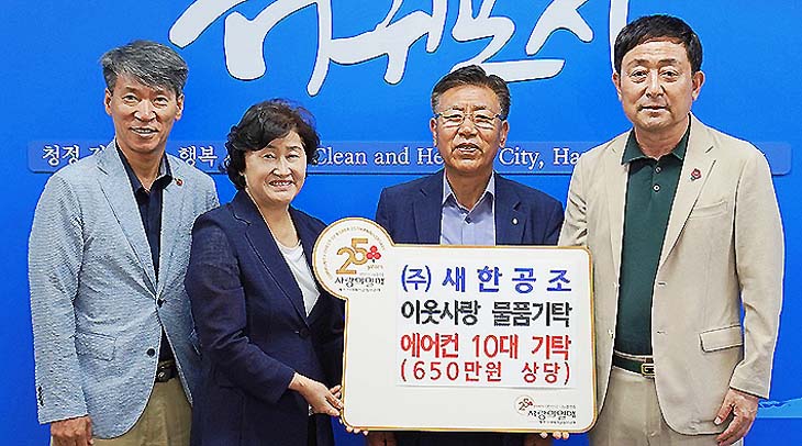 (주)새한공조(대표 이세문)는 지난 25일 서귀포시청(시장 이종우)에서 650만원 상당의 에어컨 10대를 제주사회복지공동모금회(회장 강지언)에 기탁했다.