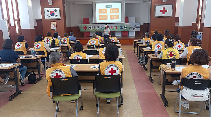대한적십자사제주특별자치도지사(회장 정태근)는 지난 28일 적십자사 나눔홀에서 적십자봉사원 35명을 대상으로 재난구호 활동가 교육을 실시했다.
