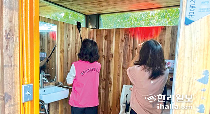 제주시는 지난 1일 양성평등주간을 맞아 제주시여성단체협의회(회장 김경애), 제주여성긴급전화1366센터(센터장 심화정)와 함께 디지털 성범죄 근절을 취지로 공중화장실 내 불법카메라 설치 여부를 점검했다.