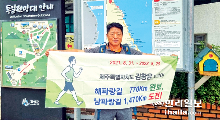 제주특별자치도 농업기술원 공무원인 김창윤(58)씨는 2년 동안 주말 및 연휴를 이용해 부지런히 걸었다. 이는 매번 30㎞ 이상 걷는 강행군이었다.