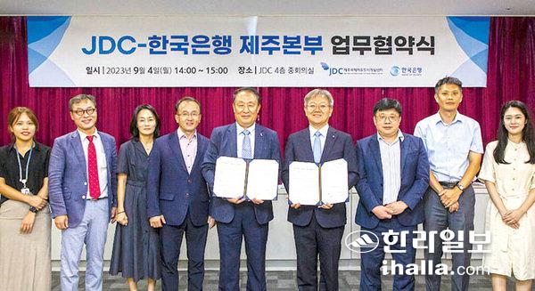 한국은행 제주본부(본부장 정일동)와 제주국제자유도시개발센터(이사장 양영철, 이하 JDC)는 4일 제주첨단과학기술단지 입주기업 지원에 관한 업무협약을 체결했다.
