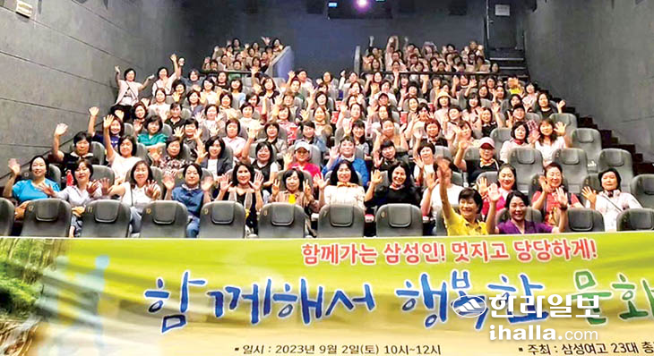 삼성여자고등학교 총동문회(회장 강창숙)는 지난 2일 서귀포롯데시네마 1관, 5관에서 200여명의 동문이 함께해서 행복한 문화여행으로 제주출신 고희영 감독의 '물꽃의 전설'을 단체관람했다.