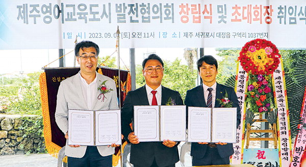 제주영어교육도시 발전협의회 창립 발대식을 기념하여 지난 2일 제주영어교육도시 발전협의회(회장 김경보), 초록우산 제주후원회(회장 황금신), 초록우산 제주지역본부(본부장 변정근)는 기부문화 정착을 위한 사회공헌 협약식을 진행했다. 이날 사회공헌 협약은 취약아동의 아동복지 실현과 건전한 기부문화 정착을 위해 3개 기관이 상호 협력할 것을 내용으로 체결됐다.