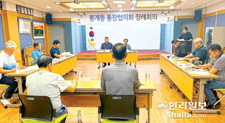 제주시 봉개동(동장 김문규)과 봉개동 통장협의회(회장 김신홍)는 지난 5일 봉개동 주민센터 회의실에서 9월 정례회의를 갖고 오는 10월에 개최되는 탐라문화제 홍보 및 아동건강체험 활동비 지원 사업 등 동 행정 협조사항에 대해 논의했다.