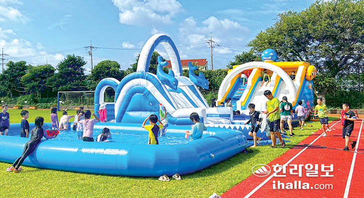 흥산초 운동장서 전교생 물놀이활동