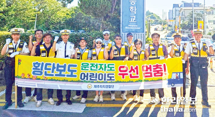 제주자치경찰단 서귀포지역경찰대(대장 이순호)와 자치경찰 주민봉사대(대장 김용훈)는 지난 5일 동홍초등학교에서 등굣길 어린이 보행안전을 지도하고 운전자들에게 교통법규 준수 캠페인을 전개했다.