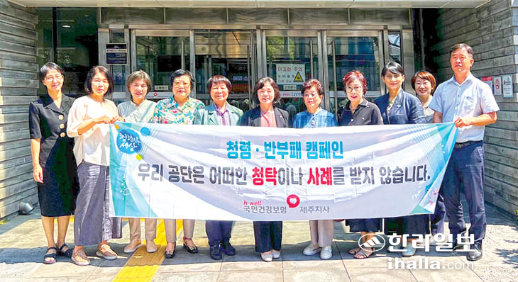 국민건강보험공단 제주지사(지사장 김영애)는 6일 민간단체(제주녹색소비자연대, 한국부인회제주지부, 소비자교육중앙회제주지부, 제주YWCA)와 함께 국민으로부터 투명하고 공정한 공단 이미지 정립과 윤리·인권 및 청렴문화 확산을 위한 '2023년 민간단체와의 청렴실천 간담회 및 캠페인'을 실시했다.