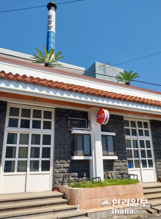 [한라일보] 멀리에서도 보이는 기다란 굴뚝이 '목욕탕'이었다는 것을 말해준다. '동명목욕탕'이라고 적힌 동그랗고 빨간 간판도 그대로 남아 있다. 동네 사람들에겐 여전히 오랜 목욕탕으로 기억되는 곳이다.