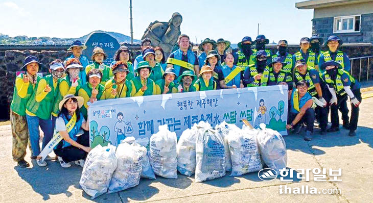삼양동새마을부녀회(회장 양혜숙)와 한국농어촌공사 제주본부(본부장 김동철), 제주해안경비단(단장 문영근)은 지난 6일 삼양해수욕장 일대에서 정화활동을 실시했다.