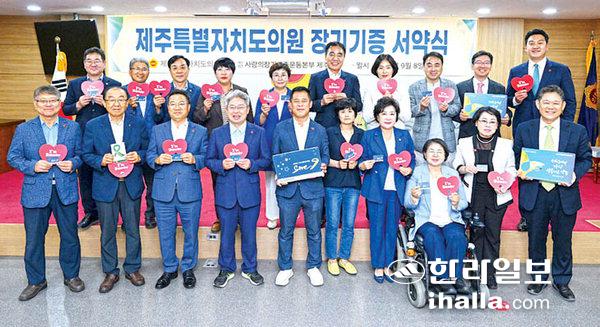 제주도의회(의장 김경학)와 사랑의장기기증운동본부 제주지부(본부장 조영증)는 제11회 장기 기증의 날을 맞아 지난 8일 도의회 대회의실에서 '장기 기증 서약식'을 개최했다.