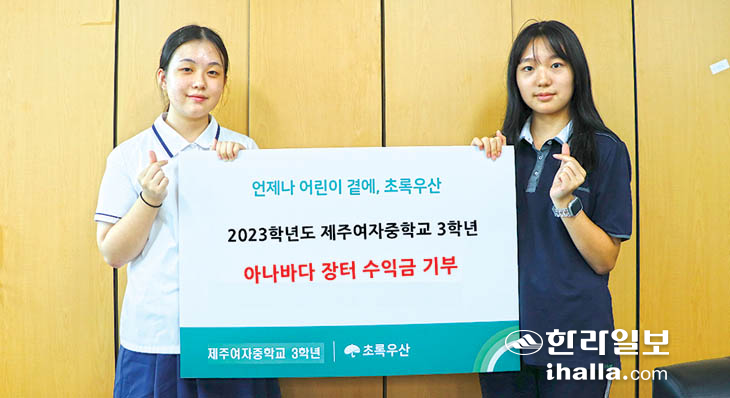 제주여자중학교 3학년은 지난 5일 '꿈·끼' 주간행사로 진행된 아나바다 장터 수익금 30만원을 초록우산 어린이재단 제주지역본부(본부장 변정근)에 전달했다.
