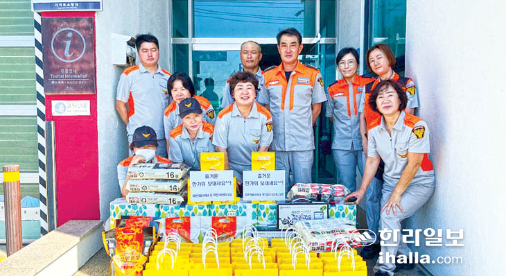 서귀포소방서 효돈의용소방대(남성대장 강갑훈·여성대장 오금숙)와 효돈119센터(센터장 김영삼)는 민속고유 명절인 추석을 맞아 나눔문화 확산과 이웃사랑 실천을 위해 관내 독거노인 등 어려운 이웃을 위문했다.