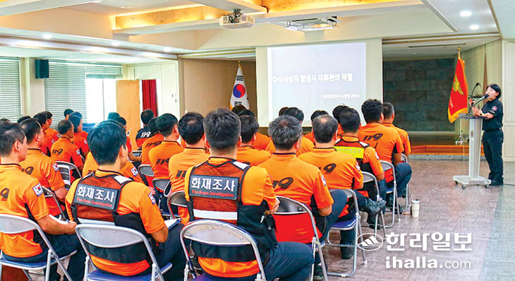 제주소방서(서장 양인석)는 12일 제주소방서 2층 대회의실에서 지휘관을 대상으로 구급 대응역량 강화를 위해 다수사상자 특별 교육을 진행했다.