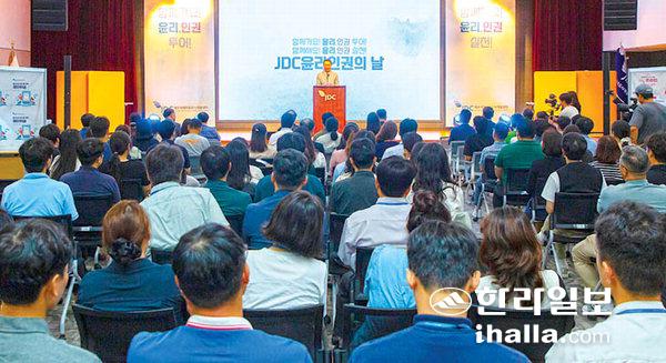 제주국제자유도개발센터(이사장 양영철, JDC)는 윤리·인권경영 및 청렴의식 확산 활동의 일환으로 지난 12일 JDC 윤리인권의 날 행사를 진행했다.