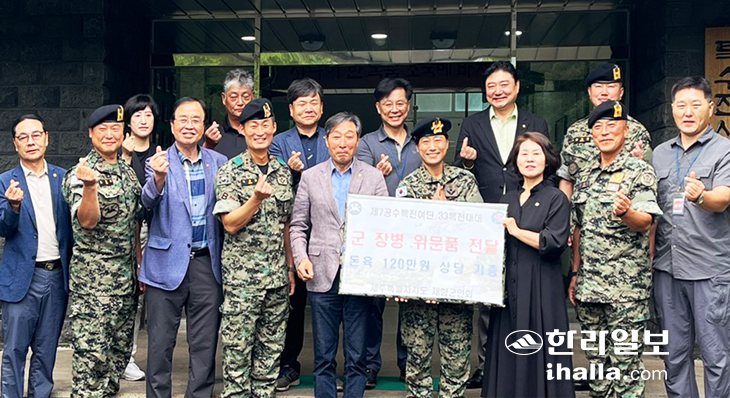 제주도재향군인회(회장 김달수)는 지난 14일 한가위를 앞두고 특전사 천마부대 3대대를 방문해 장병들의 노고를 격려하고 돈육 2마리를 위문품으로 전달했다.