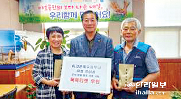 아라온해수사우나(대표 장승남)는 지난 13일 이호동 지역 내 어려운 이웃을 위해 사용해달라며 사우나 이용권 180매를 이호동지역사회보장협의체(공동위원장 김라미·박재현)에 전달했다.