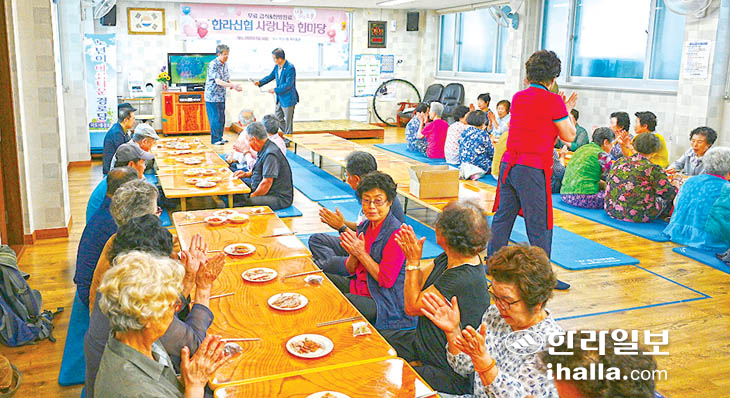 한라신협(이사장 강정신)은 지난 14일 이도1동 주민센터 복지회관에서 '사랑나눔한마당 제28회' 봉사활동을 실시했다. '한라신협 사랑나눔한마당'은 임직원과 조합원으로 구성된 홍보봉사위원들이 함께 참여하고 보화당한의원(원장 허재혁)의 후원으로 지역 어르신들과 주기적으로 만나 안부를 살피고, 맛있는 점심식사와 한방진료를 제공하는 봉사활동 프로그램으로 지난 2013년부터 3개월에 한번씩 지속적으로 진행하고 있다.