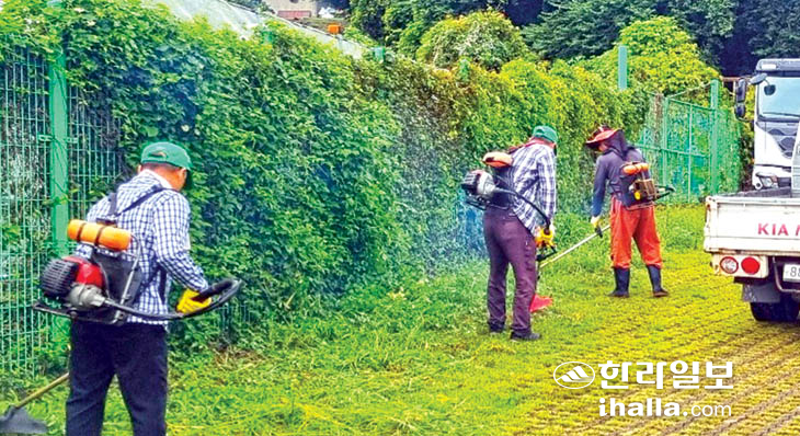 서귀포시 새마을지도자대륜동협의회(회장 오용범)는 지난 14일 회원 20명이 참여해 이어도로와 법환로 도로변을 중심으로 풀베기 작업을 실시했다.