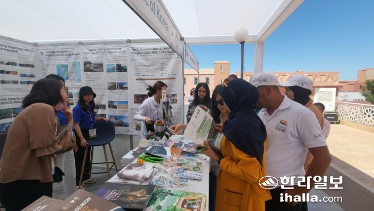 제주도 세계지질공원 홍보부스를 찾은 각국 대표들. 사진=강시영 원장