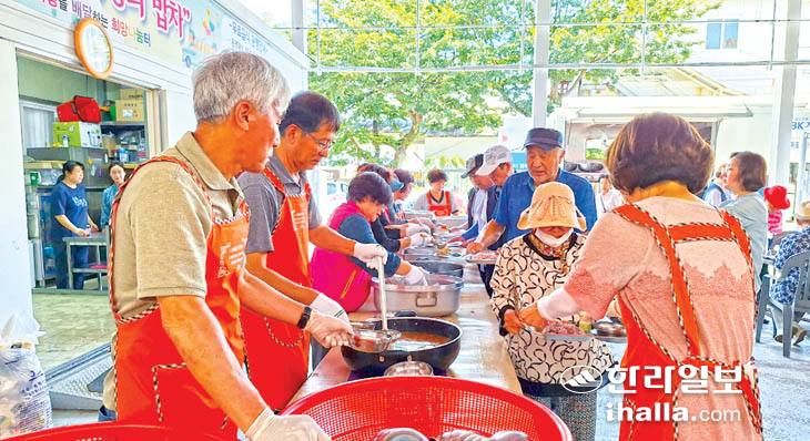 중문칠선녀로타리클럽(회장 김화선)은 지난 19일 서귀포시 매일올레시장에서 회원 30여명이 참여한 가운데 지역 어르신 300여 명에게 사랑의 밥차 무료 배식 봉사 활동을 실시했다.
