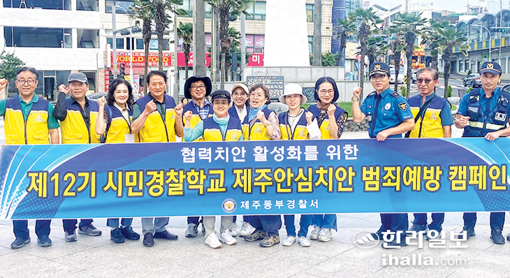 이번 캠페인은 추석이 다가옴에 따라 각종 사건·사고 예방 및 지역사회 안전에 대한 공감대를 확보해 나가기 위해 진행됐다. 캠페인은 총 20명(경찰 5명·시민경찰 15명)이 참여해 동문시장·산지천 광장 일대를 2개조로 나눠 도보 순찰했다.