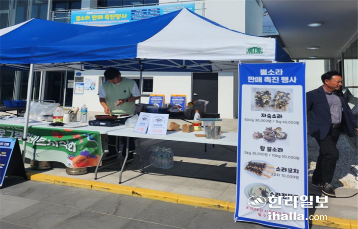 [한라일보] 제주 뿔소라 소비 촉진 행사가 이어지고 있다. 일본 수출 감소와 국내 소비 위축으로 어려움을 겪는 도내 어촌마을을 지원하기 위한 자리다 .