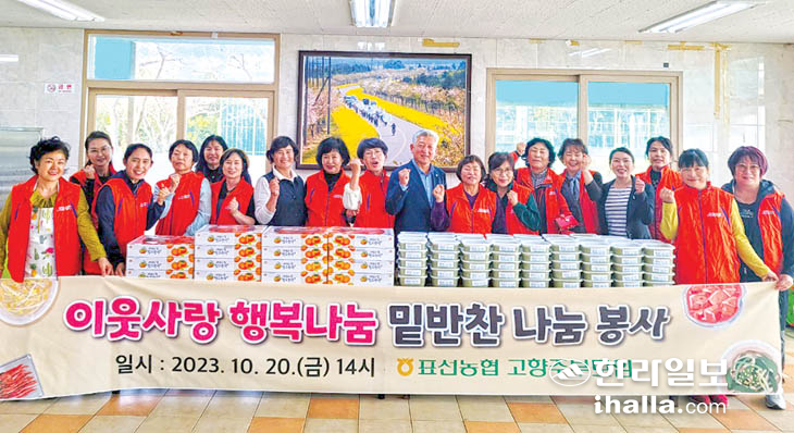 표선농협 고향주부모임(회장 차옥화)은 지난 20일 회원 20여명과 함께 '이웃사랑 행복나눔 밑반찬 나눔 봉사'를 전개했다. 회원들은 이날 정성껏 준비한 제철과일·음식들을 표선면 지역내 힘들고 소외된 취약가구 100여명에게 전달했다.