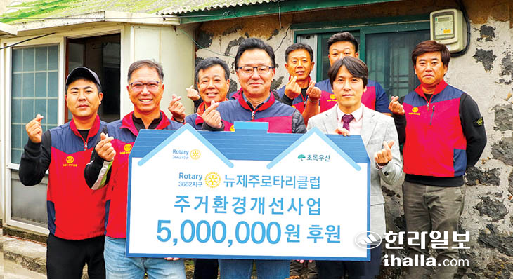 국제로타리 3662지구 뉴제주로타리클럽(회장 김용광)과 초록우산 제주지역본부(본부장 변정근)는 제주도내 열악한 가정을 선정, 리모델링을 지원하는 '주거환경 개선서비스'를 진행해 지난 23일 후원금 전달식을 가졌다.