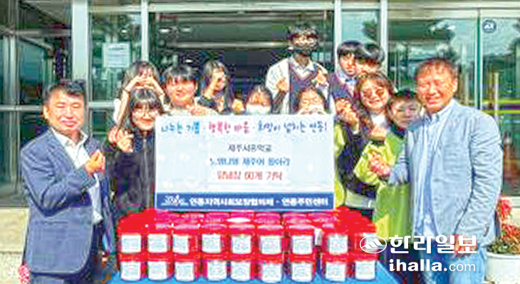 제주서중학교(교장 강문식) '느영나영 제주어동아리'는 지난 26일 제주시 연동주민센터에 양념장 60개를 기탁했다.