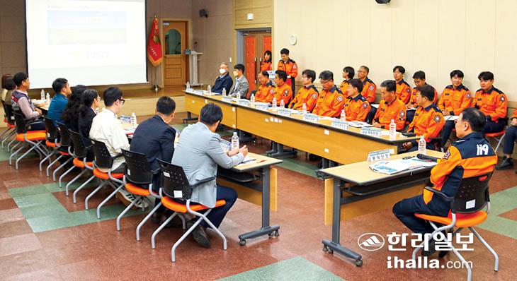 제주동부소방서(서장 김대홍)는 지난 26일 대회의실에서 긴급구조종합훈련 대비 긴급구조기관, 지원기관별 공조체계 및 통합지휘체계 확립을 위한 유관기관 합동 회의를 개최했다.