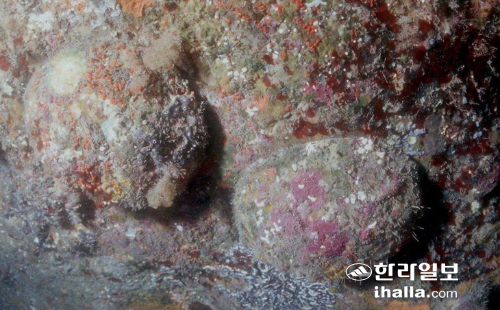 | 제주 바다 수심 20m 바위 위에 서식하는 대형 전복. 사진 김병일 |