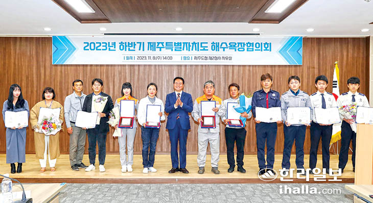 김희현 제주특별자치도 정무부지사는 8일 제주도청 제2청사 자유실에서 열린 '2023년 하반기 제주특별자치도 해수욕장협의회'에 참석해 올 여름 청정·안전 해수욕장 운영에 기여한 유공자에게 표창을 수여하고 해수욕장 운영·관리에 힘쓴 공무원과 마을회·청년회 등의 노고에 감사와 격려를 전했다.