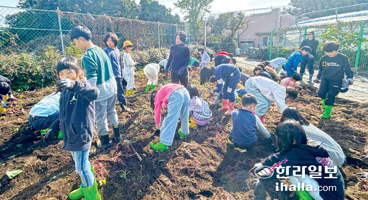 흥산초 전교생 텃밭서 고구마 수확 활동