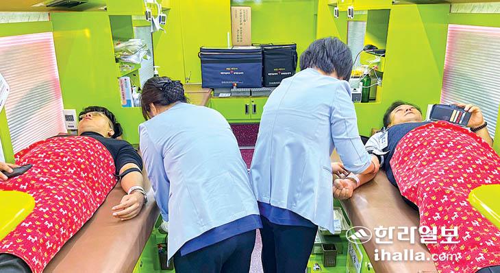 제주농협은 2023년 사랑의 헌혈운동 캠페인을 진행, 각종 행사·회의 및 교육시마다 헌혈 참여를 독려하는 홍보활동을 실시하고 있으며, 농협제주본부도 지난 3·7월에 이어 지난 8일에도 제주본부 주차장에서 헌혈운동을 전개했다. 이날 행사에는 짧은 일정에도 불구제주농협 임직원 20여명이 헌혈운동에 동참했다.