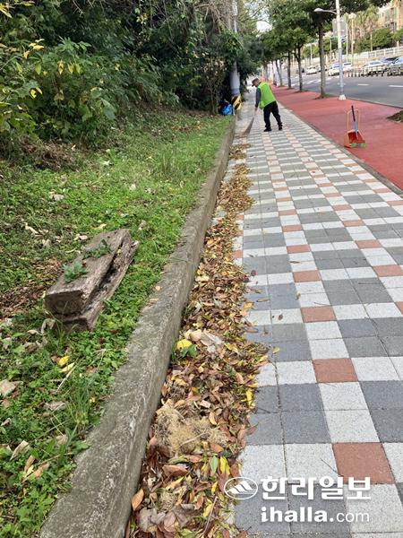 제주시 관계자는 "제주시에만 기간제 근로자 124명이 고용돼 낙엽 청소 등 가로 환경정비를 하고 있다"면서 "그럼에도 다 치워지지 않는 낙엽은 주기적으로 노면 청소차 17대를 동원해 치우고 있다"라고 전했다.