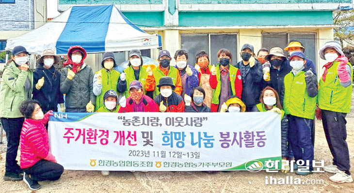 한경농협(조합장 김군진)과 농가주부모임(회장 김보영) 회원 30여 명은 지난 12일부터 13일까지 한경농협 관내 거주하는 취약계층 농업인 가정의 오래된 벽지와 장판을 교체하는 등 생활주거환경개선 사업을 펼쳤다.