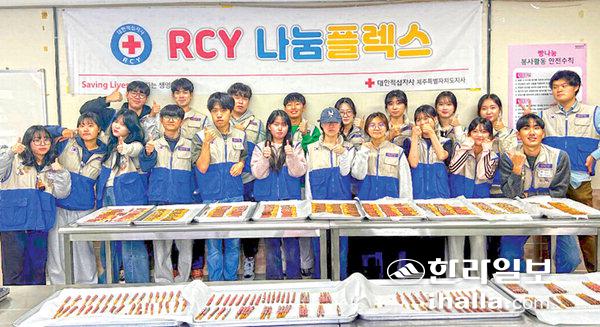 이날 RCY 회원들은 이웃에 사랑을 전하기 위해 수제 초코막대과자 600개를 만들어 제주몽생이그룹홈과 제주소나이그룹홈에 전달했다.