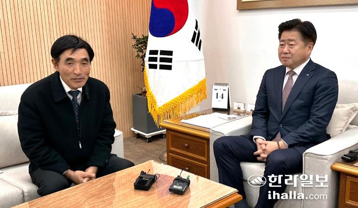 오영훈 제주특별자치도지사는 14일 오후 도지사 집무실에서 오임종 직무대행과 면담을 진행했다. 이날 만남은 오영훈 도지사가 요청해 성사된 것으로 알려졌다.