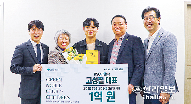 KSC기업 고성철 대표가 지난 10일 초록우산 고액기부자 모임인 그린노블클럽 제주 33호에 가입하며 최연소 그린노블스클럽 회원이 됐다.