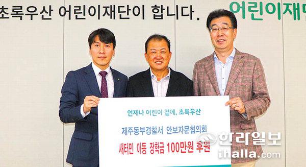 제주동부경찰서 안보자문협의회(회장 박성필)는 지난 14일 초록우산 제주후원회(회장 황금신)와 초록우산 제주지역본부(본부장 변정근)에 새터민 아동 장학금 100만원을 전달했다.