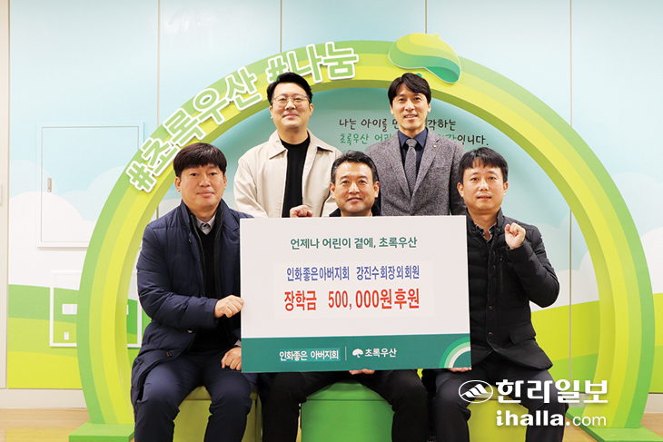 인화초등학교 인화좋은 아버지회(회장 강진수)는 지난 16일 초록우산 제주지역본부에 아동 장학금 50만원을 전달했다. 후원금은 회원들이 십시일반 모아 마련한 금액으로 인화초에 재학중인 아동가정에 전달된다.