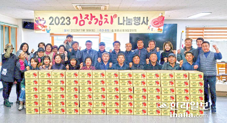 재제주시예래동향우회(회장 이용민)는 지난 18일 향우회원 40여 명이 참여해 고향 사랑, 이웃 사랑 김장 김치 나눔 행사를 벌여 지역 내 독거어르신 등 100여 가구에 김장 김치를 전달했다.