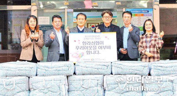 한라신협(이사장 강정신)은 지난 16일 이도1동주민센터(동장 양경원)와 이도2동주민센터(동장 한재영)에 취약계층가정지원을 위한 겨울이불을 각 20채씩 총 40채를 전달하며 나눔 활동을 진행했다.