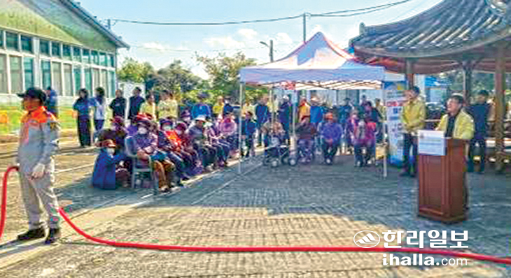 제주시 한림읍 상명리(이장 양희찬)는 민방위 시범마을로서 지난 17일 상명리사무소에서 지역민방위대와 마을 어르신 70여 명이 참여한 가운데 화재대피 훈련을 실시했다.