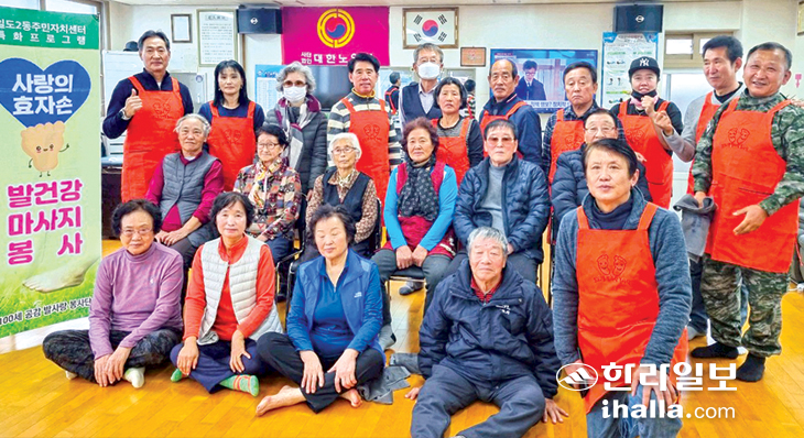 100세공감 일도2동 발사랑봉사단(단장 고덕훈)은 제주시 일도2동주민센터(동장 정윤탹)와 함께 일도2동 동광경로당에서 어르신들에게 발마사지를 하는 봉사활동을 펼쳤다.