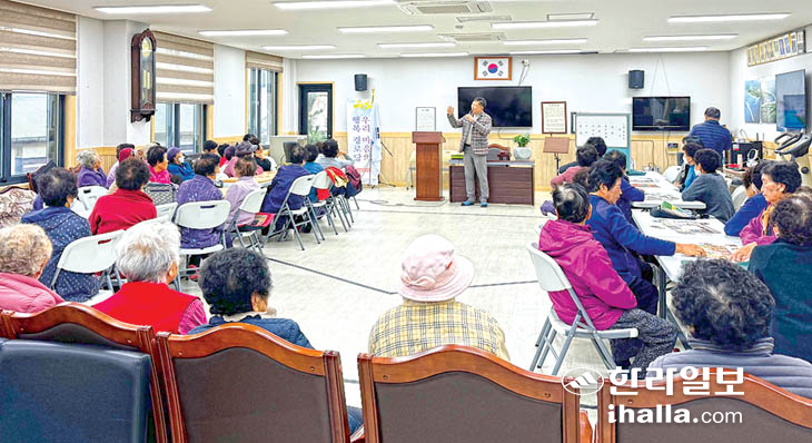 서귀포고등학교 재학 중인 1학년 학생 4명은 지난 17일 서홍동 경로당에서 어르신 30명을 대상으로 무인주문기(키오스크) 사용 교육을 실시했다. 김충만 서홍동노인회장은 "어르신들을 위해 이런 프로그램을 기획하고 추진한 것이 매우 기특하고 고맙다"고 전했다.