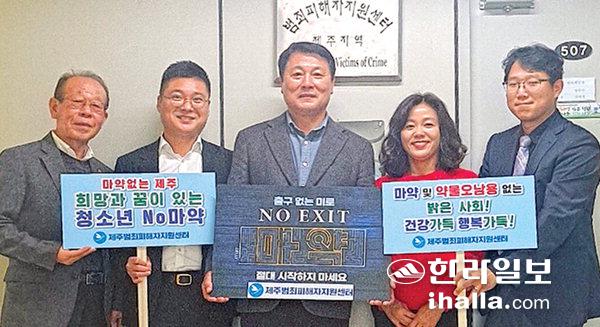 제주범죄피해자지원센터(이사장 강신보)는 20일 마약예방과 약물 오남용 없는 맑은 사회를 위해 마약퇴치운동본부와 경찰청이 추진하고 있는 'NO EXIT' 릴레이 켐페인에 동참했다.