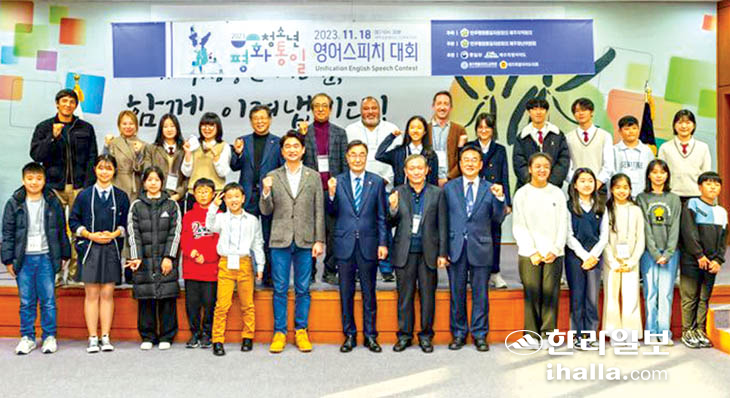 민주평화통일자문회의 제주지역회의(부의장 고충홍)가 주최하고 청년위원회(위원장 김지은)가 주관한 2023 청소년 평화통일 영어스피치대회가 지난 18일 제주상공회의소에서 열렸다. 청소년 평화통일 영어스피치대회는 '한반도 평화통일의 길, 제주 미래세대들에게 듣는다'를 대주제로 초등부 5~6학년과 중·고등부 1~2학년을 대상으로 나눠 개최됐다.